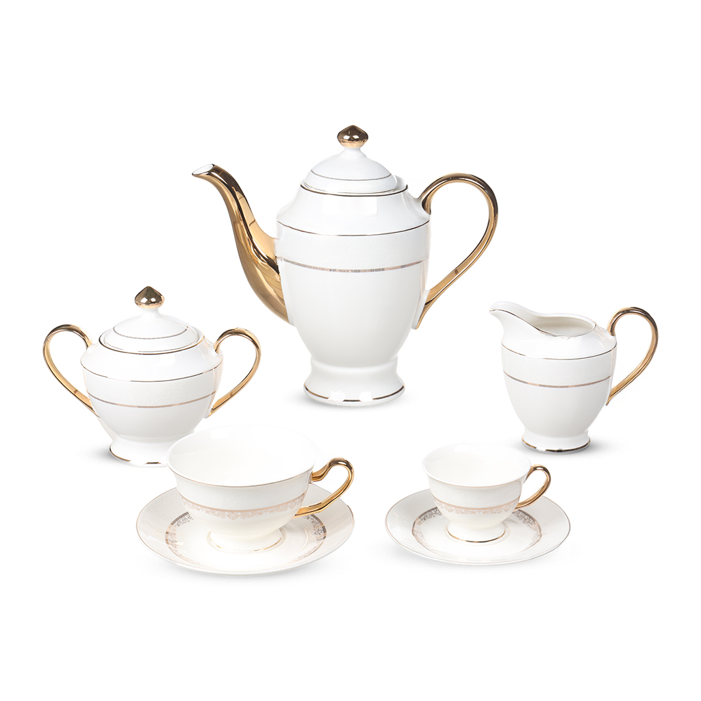 العلامة التجارية: كوالتيير النوع: طقم سفرة اللون: أبيض ذهبي عدد القطع: 60 قطعة الخامة: بورسلين طقم بورسلين 60 قطعة : يحتوي علي : عدد 2 سرفيس تقديم عدد 6 طبق شوربة 23 سم عدد 6 طبق عشاء 28 سم عدد 6 طبق كيك 21 سم عدد 1 بولة شوربة مع غطاء عدد 1 بولة سلطة 23 سم عدد 6 بولة سلطة 14 سم عدد 6 فنجان شاي مع 6 طبق عدد 6 فنجان قهوة مع 6 طبق عدد 1 براد مع غطاء عدد 1 سكرية مع غطاء عدد 1 لبانة عدد 2 ملاحة
