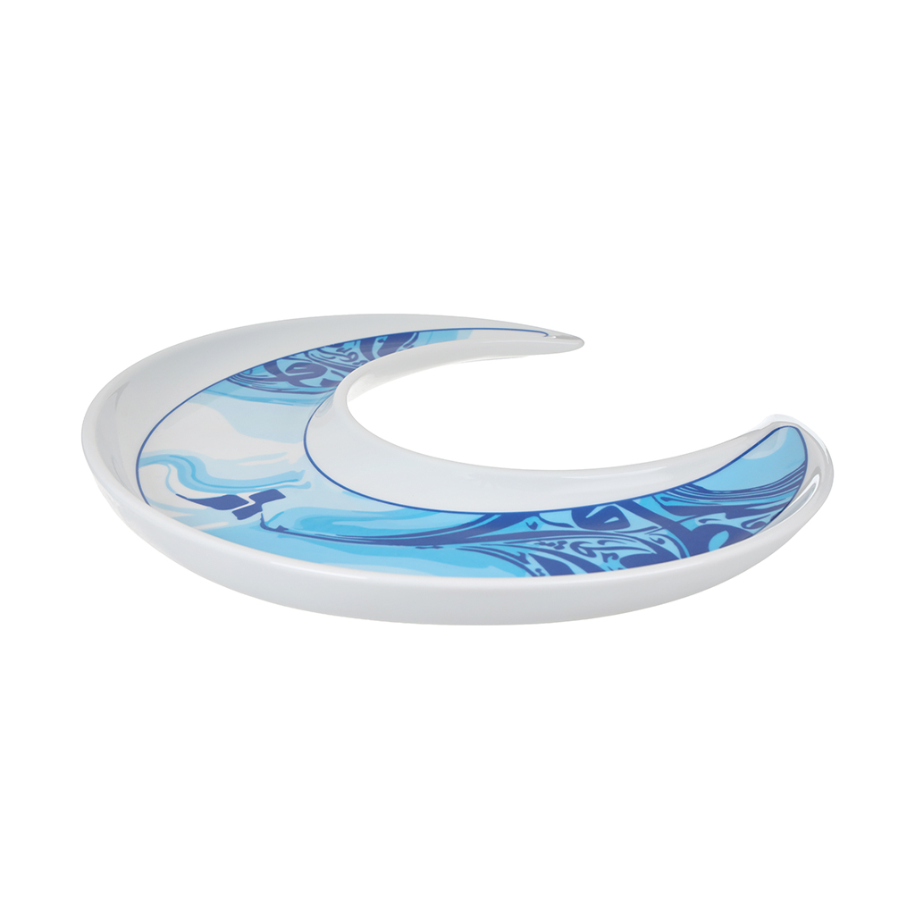 طبق تقديم تسالي بورسلين شكل هلال روزا - أزرق أبيض | Almorshedy Marts