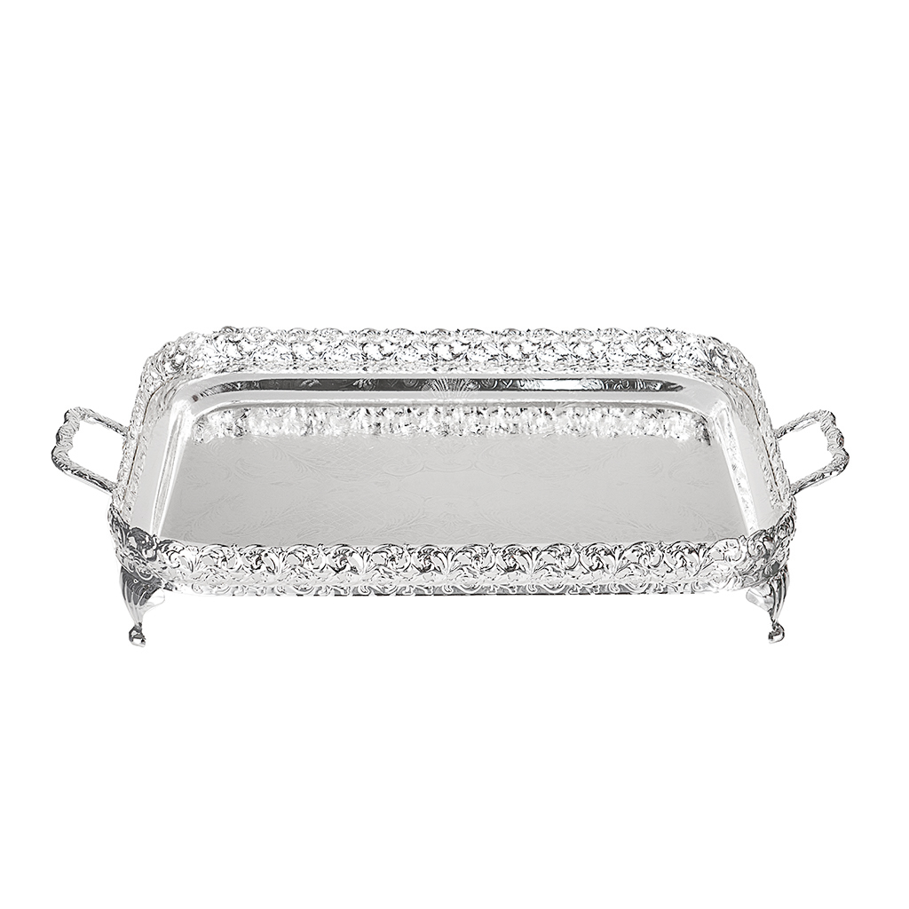 صينية مستطيلة مطلية بالفضة بمقابض وارجل كوين آن، 0/6333 - فضي | أسواق المرشدي