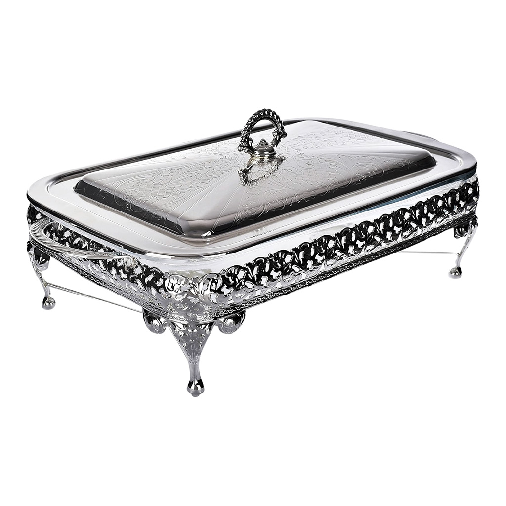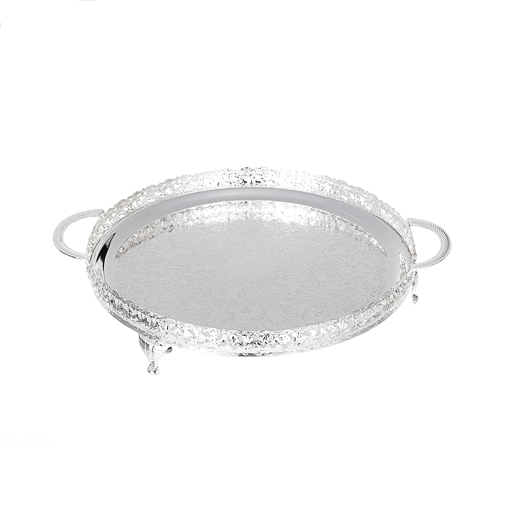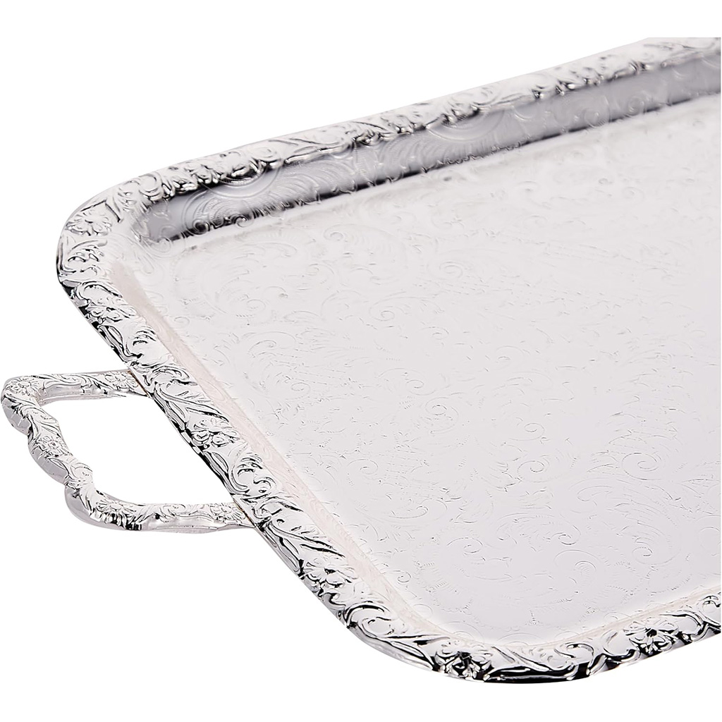 صينية مستطيلة كبيرة مطلية بالفضة بمقابض كوين ان - فضي | أسواق المرشدي