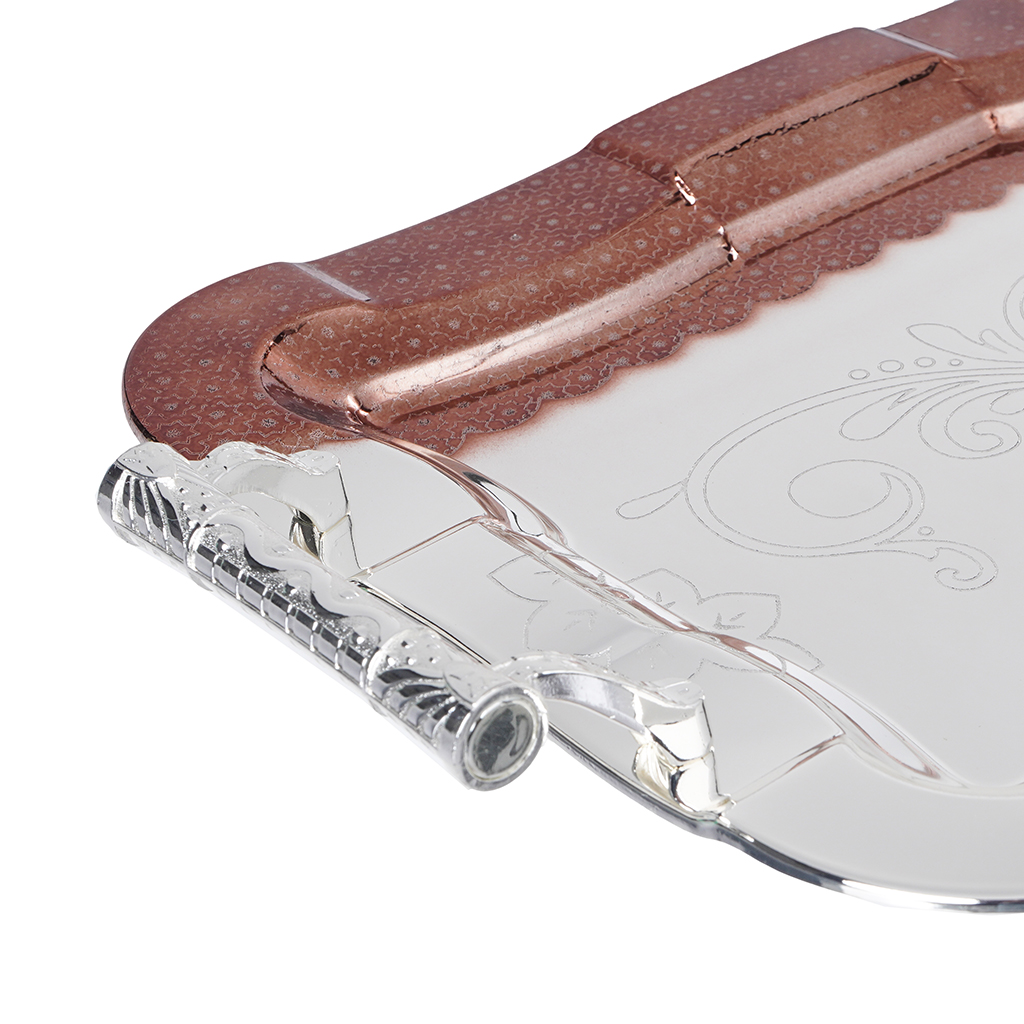 طقم صواني تقديم مستطيلة ستانلس ستيل، 2 قطعة - فضي نحاسي | Almorshedy Marts