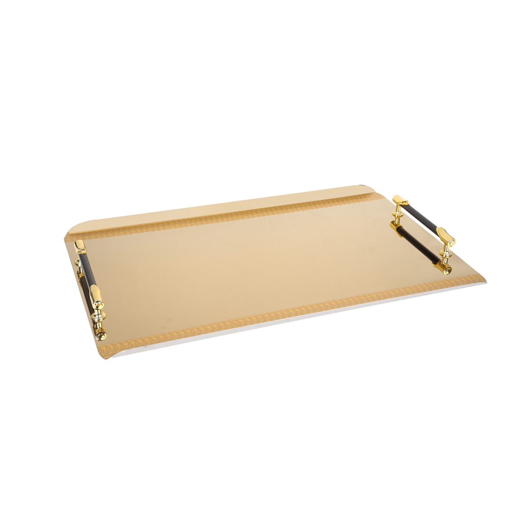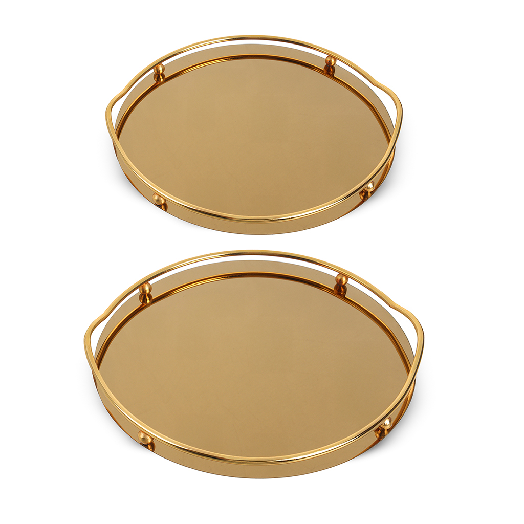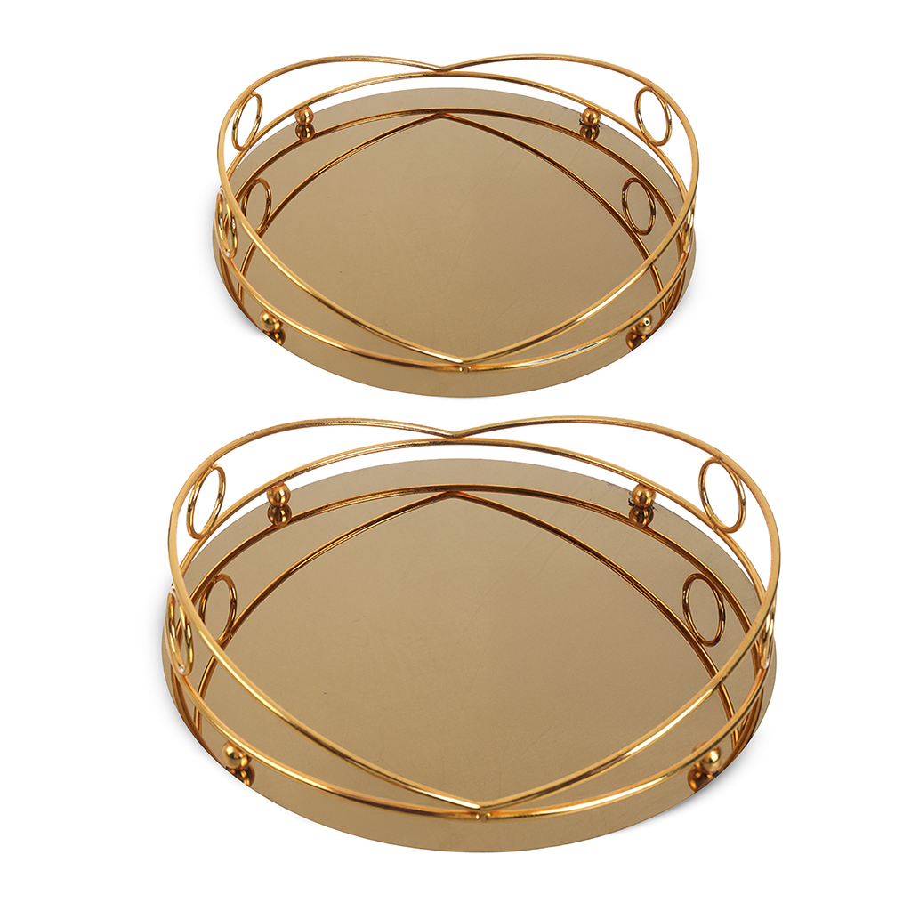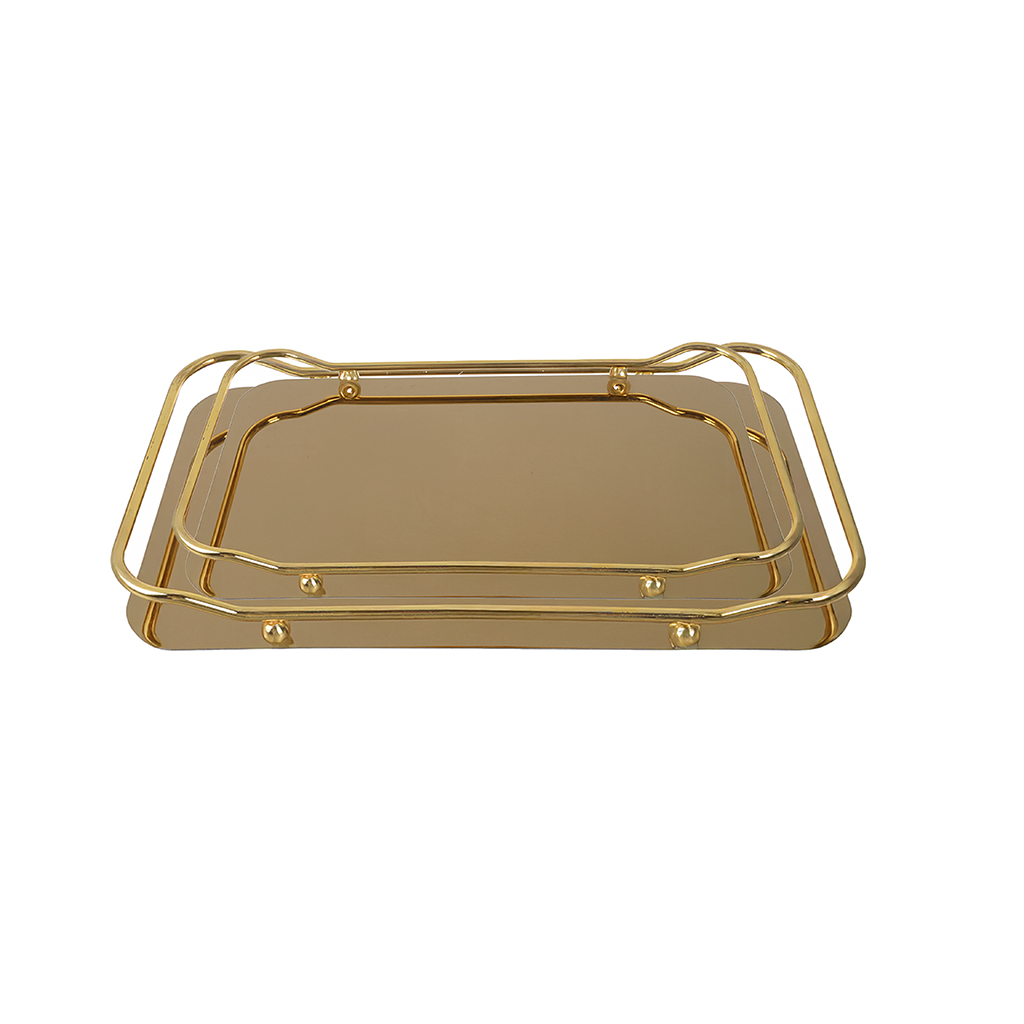 طقم صوانى تقديم ستانلس ستيل، 2 قطعة - ذهبى