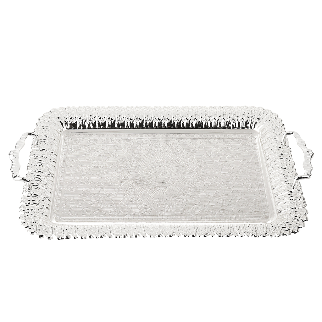 طقم صواني تقديم ستانلس ستيل، قطعتين، T1377 - فضي | أسواق المرشدي