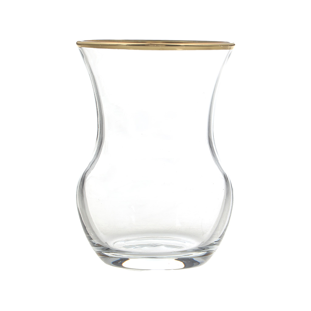 طقم أكواب مع طبق زجاج لاف، 135 مل، 12 قطعة - شفاف ذهبي | أسواق المرشدي
