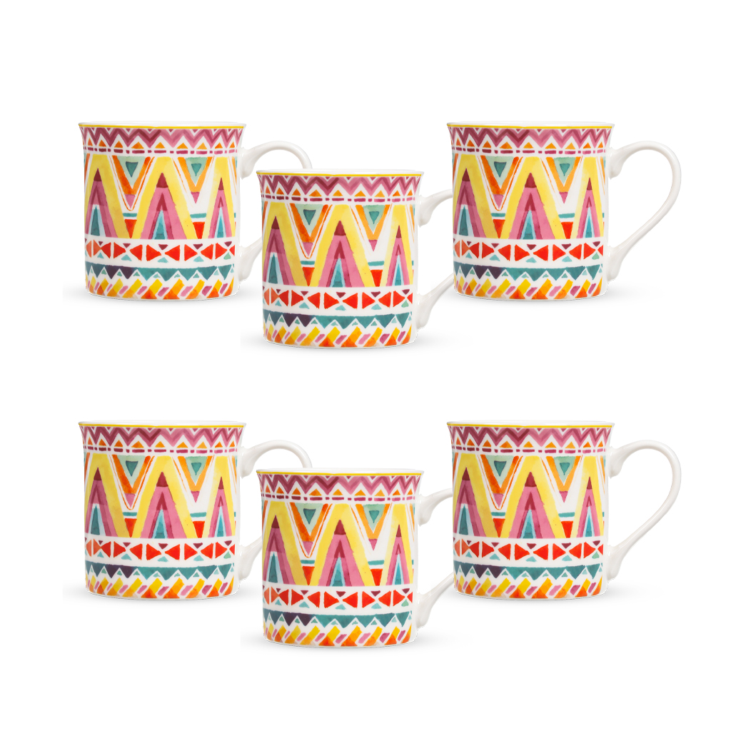 طقم مجات بورسلين لوتس، 6 قطع - أبيض ذهبي | أسواق المرشدي
