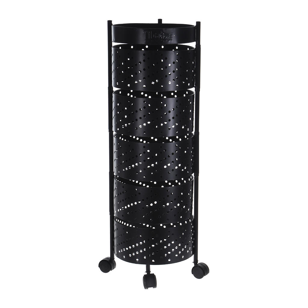 ترولي تخزين مطبخ دائري معدن طيبة هوم، مع 4 عجلات، 5 دور - أسود | Almorshedy Marts