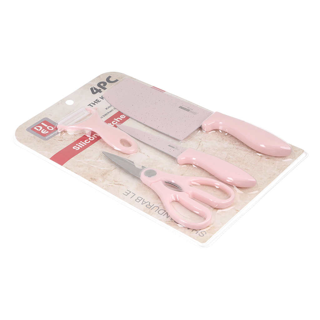 طقم سكاكين استانلس ستيل، 4 قطعة - بينك | Almorshedy Marts