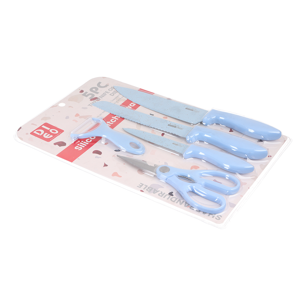 طقم سكاكين استانلس ستيل، 5 قطعة - ازرق فاتح | Almorshedy Marts