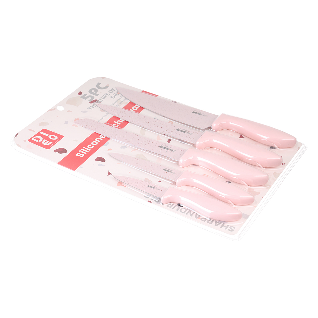 طقم سكاكين استانلس ستيل، 5 قطعة - بينك | Almorshedy Marts