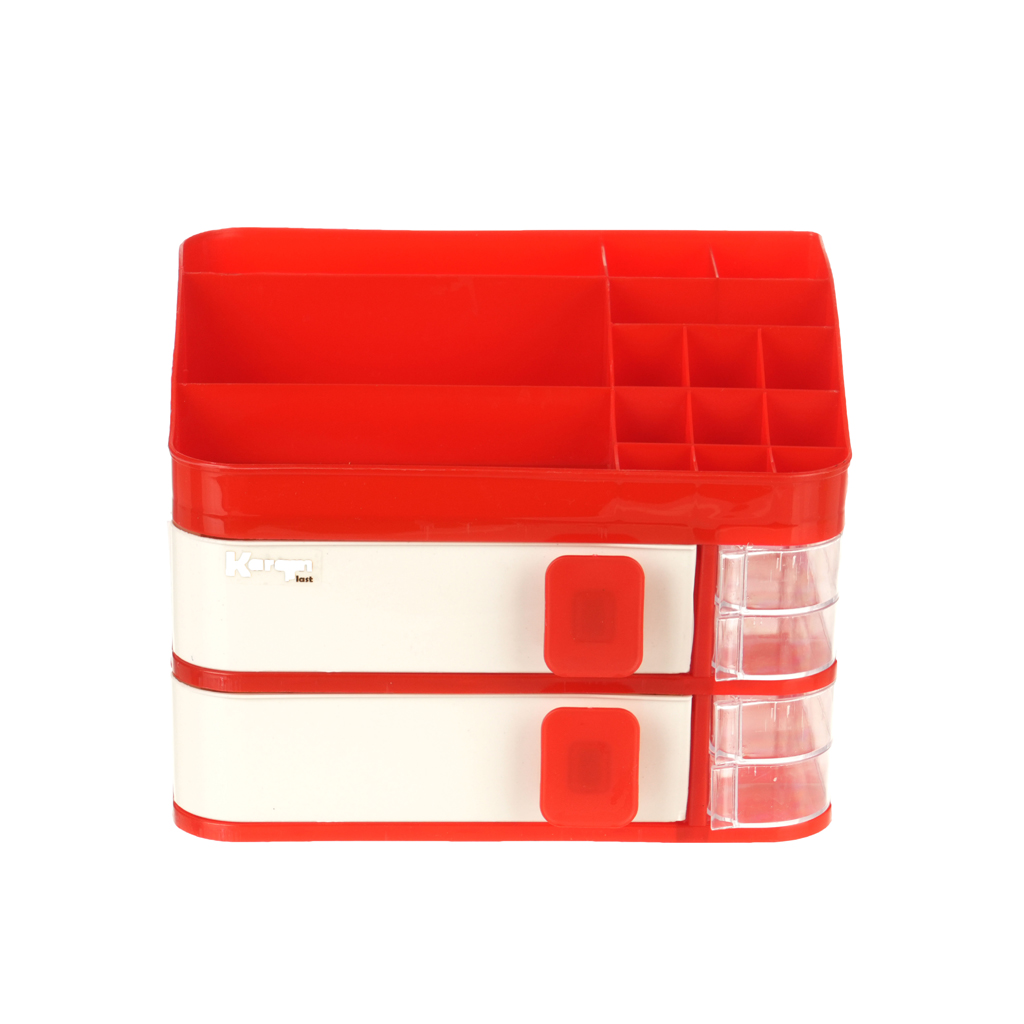 Karam Plastic Makeup Organizer, 2 Tier - Red White | Almorshedy Marts