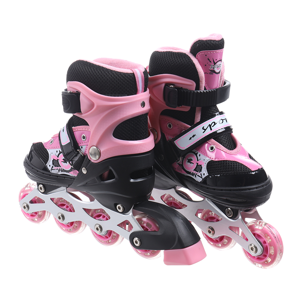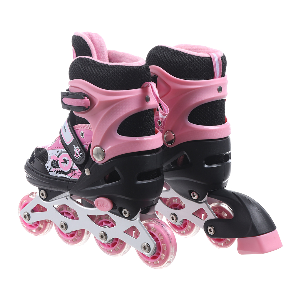 باتيناج 4 عجلات مضيئة للاطفال، مقاس صغير ( 31-34 )، QH-8806 - روز | Almorshedy Marts