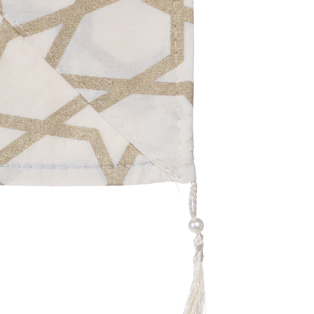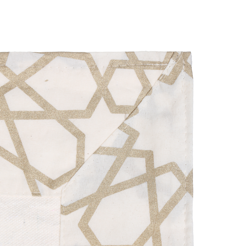 مفرش سفرة كتان مزخرف بنقوش رمضانية، 80×80 سم - بيج ذهبي | أسواق المرشدي