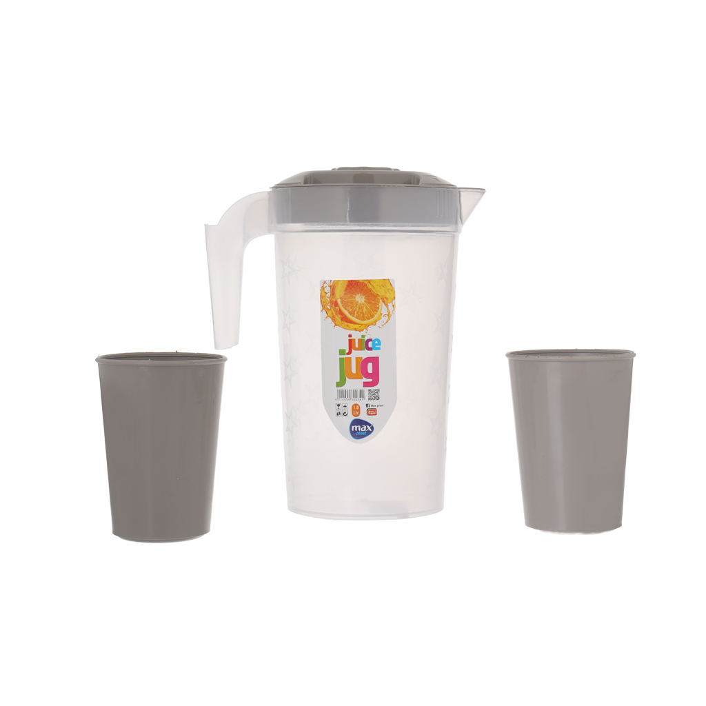 العلامة التجارية: ماكس بلاست النوع: دورق اللون: رمادي داكن عدد القطع: 3 قطع المقاس : 1.8 لتر الخامة: بلاستيك دورق مياة بسعة 1.8 لتر عدد 2 كوب بلاستيك