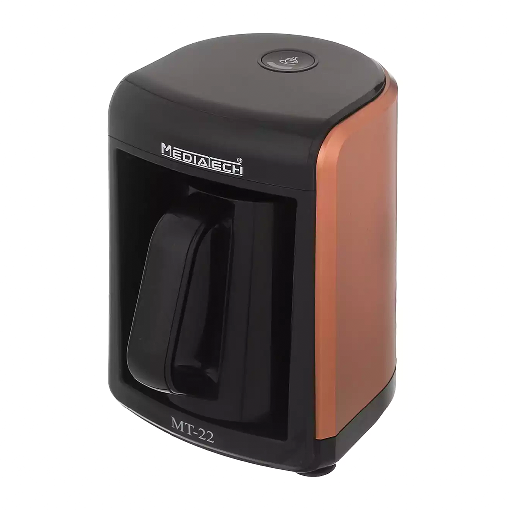 Brand: Media Tech Type: Turkish Coffee Machine Color: Black Silver Wattage: 450 Watts Model Number: MT-CM105T Warranty: Years 2 Compliant with LFGB food safety standards for maximum safety and quality. Digital control panel with two buttons for coffee preparation and a dedicated button for milk heating. Plastic outer body equipped with an NTC temperature sensor for precise temperature control. Inner container made of stainless steel. Features a three-ring control unit for easy and versatile operation. Includes an additional function for tea preparation. Voltage: 220–240V ~ / 50–60Hz.