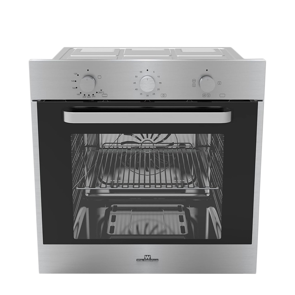 Brand: White Westinghouse Type: Oven Color: Silver Material: Stainless Steel Model Number: WG-76X Capacity: 76L Size: 60cm Power: 2500W Defrost System Type: Auto Defrost Interior Lights Timer Shelves Programmable Child Lock