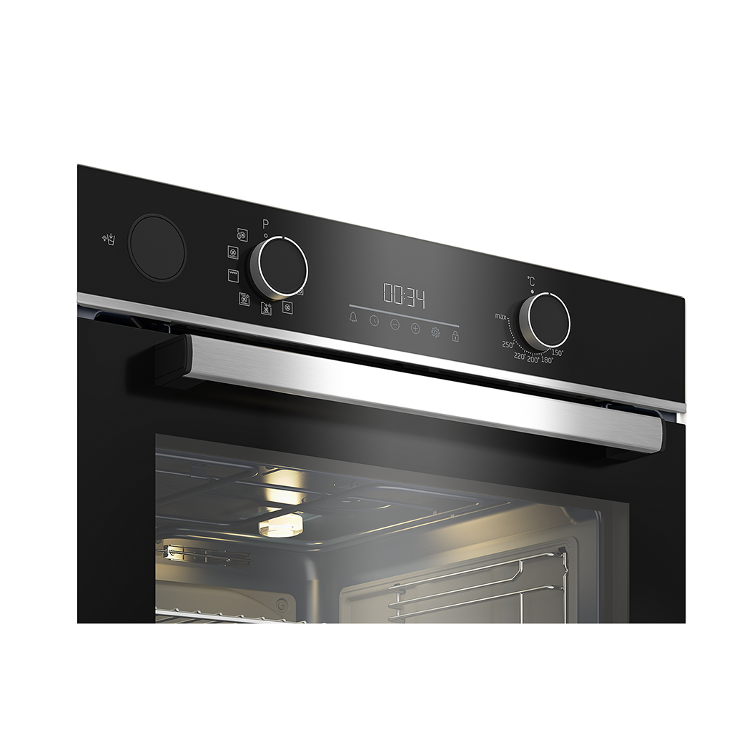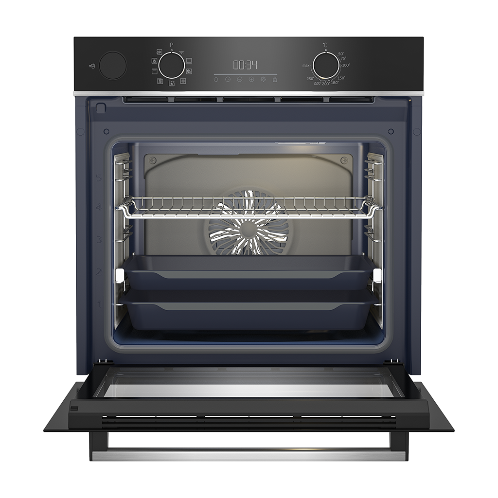 Brand: Beko Type: Built-in Gas Oven Model Number: BBIH12100BC Size: 60 cm Color: Black Capacity: 60 Liter About Product: Product Type: 60 cm Height: 59.5 cm Width: 59.4 cm Depth: 56.7 cm Display Type: Mechanical Timer Main Cavity Oven Type: Fan-Assisted Gas Door Opening Type: Downward Opening Main Cavity Capacity: 66 L Grill Type: Electric Grill Cooling Fan Lighting Type: Halogen Display Type: Mechanical Timer Number of Cavities: 1 Number of Shelf Levels: 5 Side Shelves Cavity Color: Black Enamel Door Opening Type: Downward Opening Rotor: Yes Number of Standard Trays: 1 Number of Standard Wire Racks: 1 Main Cavity Capacity: 66 L Main Cavity Heat Source: Gas Total Gas Power: 2200 W Total Electric Power: 2300 W Voltage: 220-240 V Frequency: 50 Hz Warranty: 5 Years