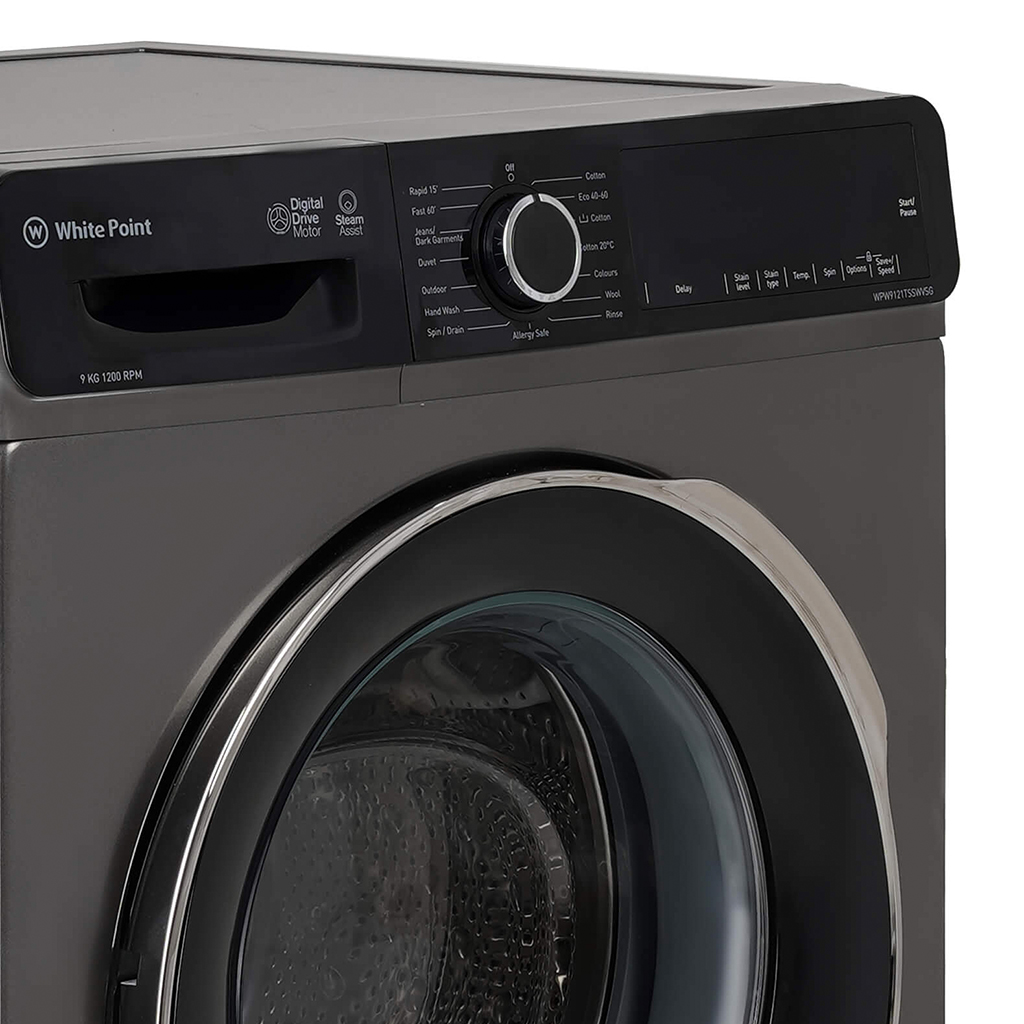White Point WPW9121TSSWVSG-BK Fully Automatic Washing Machine, 9 kg, Digital, Inverter, Steam, Front Load - Graphite | Almorshedy Marts
