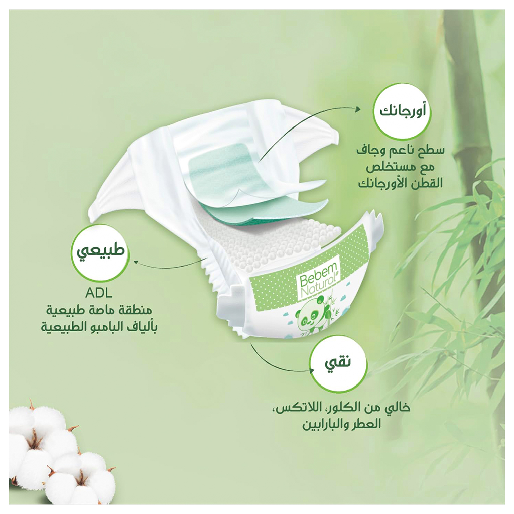 Bebem Natural Baby Diapers, Maxi Size 4, 7-18 Kg - 32 Pieces | Almorshedy Marts
