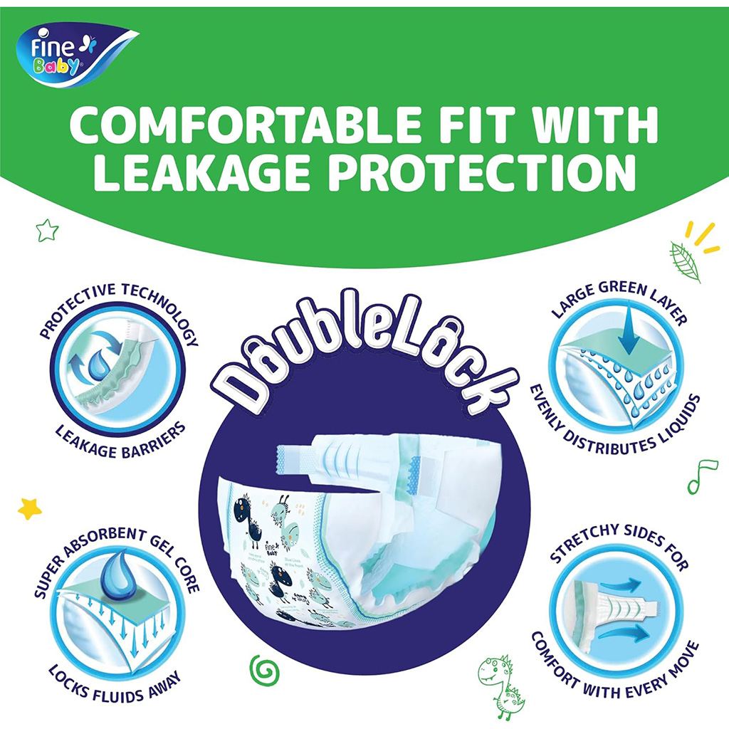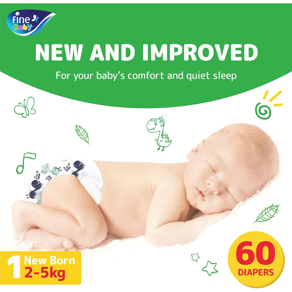 Fine Baby Tape Baby Diapers, Size 1, 2 - 5 kg - 60 Pieces | Almorshedy Marts