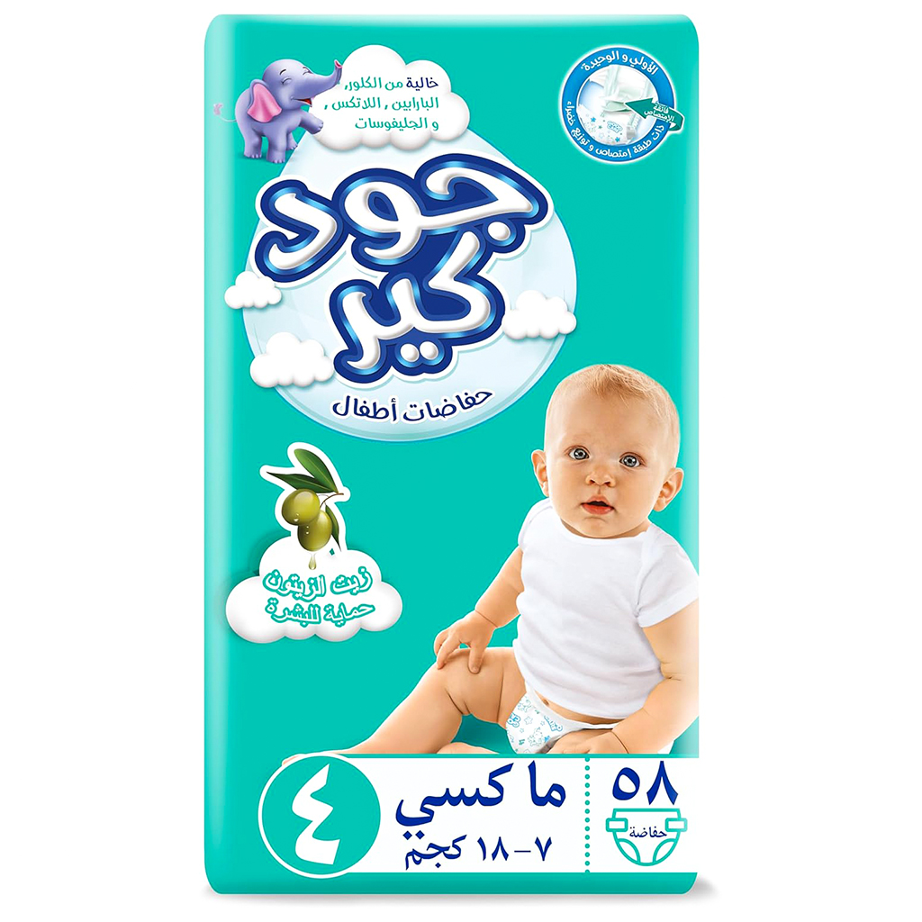 Good Care Baby Diapers, Maxi Size 4, 7-18 Kg - 58 Pieces | Almorshedy Marts