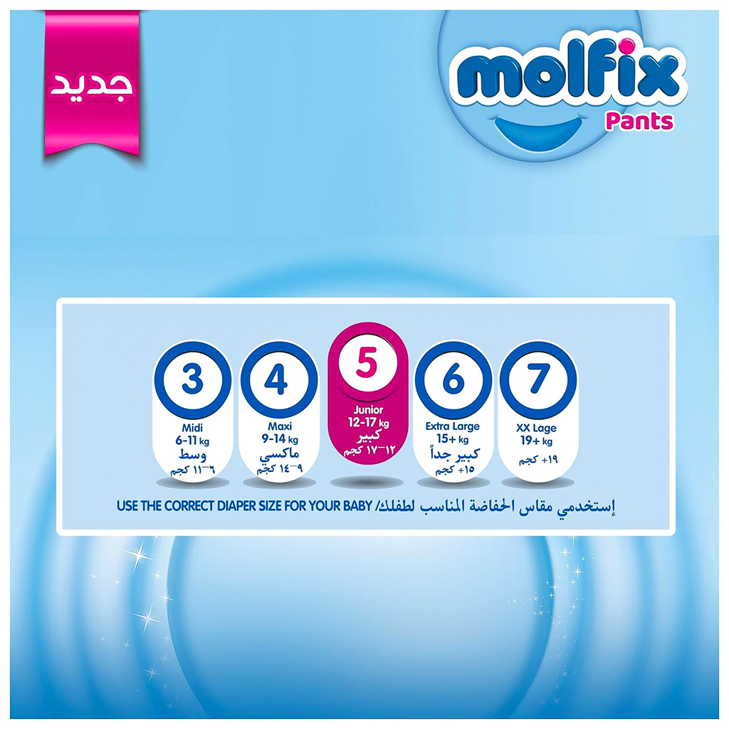 Molfix Pants Diapers, Junior Size 5, 12-17 Kg - 70 Pieces | Almorshedy Marts