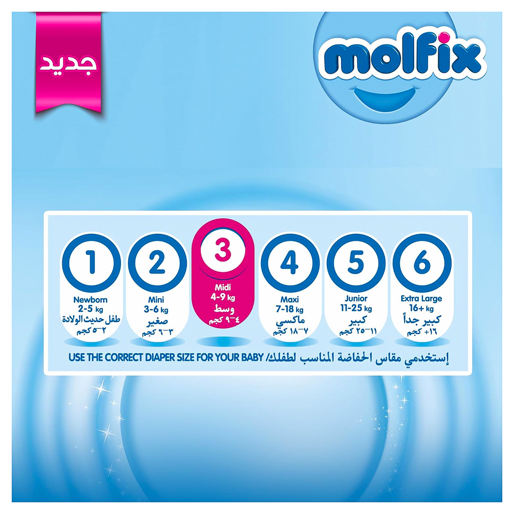 Molfix Pants Diapers, Midi Size 3, 6-11 Kg - 58 Pieces | Almorshedy Marts