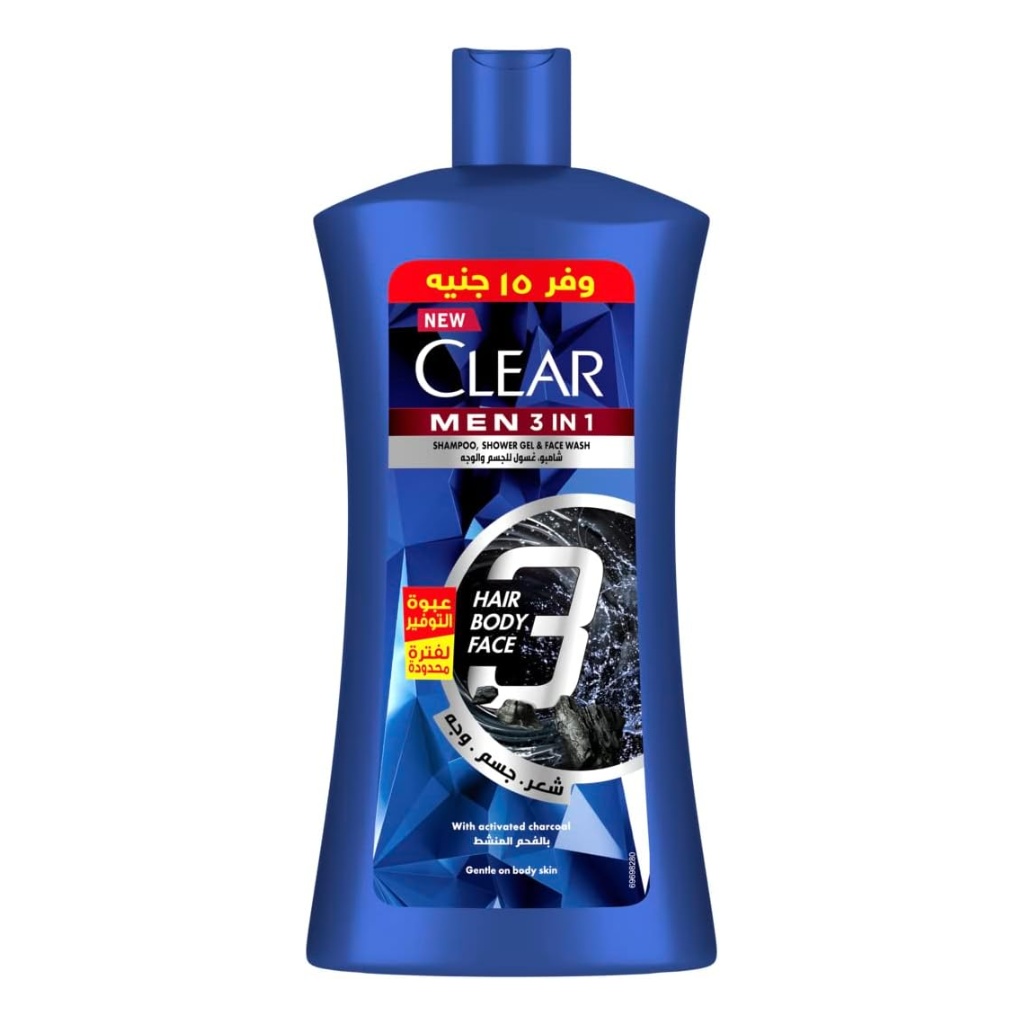 Brand: Clear Type: Shampoo & Conditioner Target Group: Men Size: 900 ml 1 product with 3 benefits: Hair, Face & Body New Clear for Men who are looking for a convenient all-in-one solution Complete Care for 100% Dandruff-free Hair and Refreshingly Cleansed and Moisturized Skin Special Liquid Gel formulation to refresh your skin without irritation for a 100%