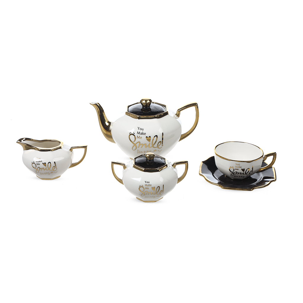 Porcelain Tea and Dessert Set, 24 Piece - White Black | Almorshedy Marts