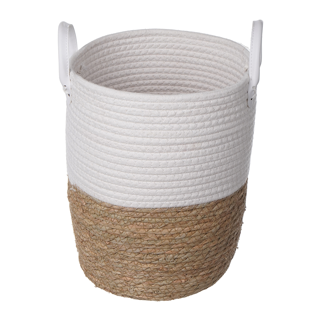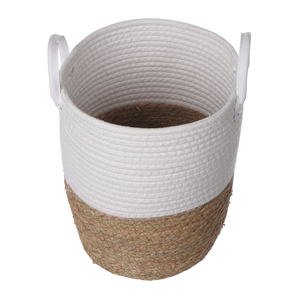 Wicker Small Laundry Clothes Basket, 32 × 26 Cm, Kyy-105 - White Beige | Almorshedy Marts