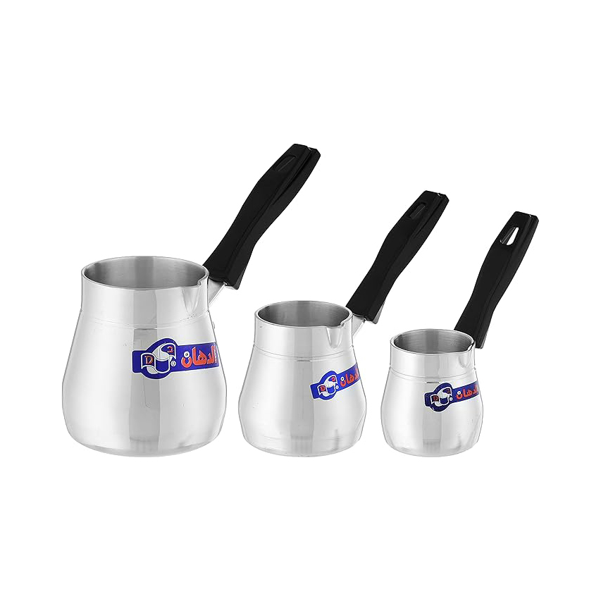 El Dahan Aluminium Coffee Pot Set With Bakalite Handle, 3 Pieces - Silver Black | Almorshedy Marts