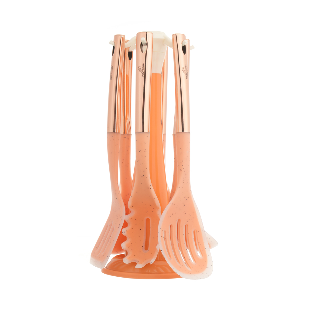 Brand: Other Type: Serving Set Color: Multicolor Number of pieces: 7 Pieces Material: Silicone 7-Piece Kitchen Utensil Set: Spatula Pasta server Serving spoon Soup ladle Skimmer Food turner Stand
