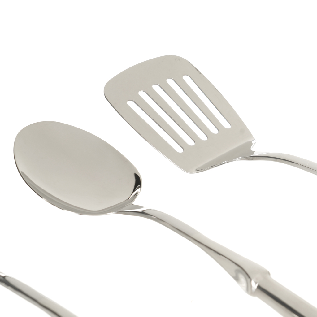 Brand : Herdmar Item Type : Dispensing Kit Set Color : Silver Material : Stainless Steel 18/10 Number of Pieces : 6 Pieces About Item : Features A Sleek And Modern Design That Adds Sophistication To Any Dining Table, Perfect For Both Casual And Formal Occasions. Made From High-Quality Stainless Steel, Ensuring Longevity And Resistance To Rust, Stains, And Corrosion. Easy To Clean: Stainless Steel Material Is Easy To Clean And Maintain, Often Dishwasher-Safe For Added Convenience. The Set Is Capable Of Withstanding High Temperatures, Making It Suitable For Serving Hot Dishes Without Worrying About Damage. Includes A Variety Of Serving Tools, Such As : 1 Soup Ladle Perfect For Serving Soups, Stews, And Broths With Ease. 2 Serving Spoons: Ideal For Serving A Variety Of Dishes Such As Vegetables, Rice, Or Pasta. 1 Fork A Serving Fork, Great For Lifting And Serving Meats, Salads, Or Other Foods. 1 Spatula A Versatile Serving Spatula For Flipping, Lifting, And Serving A Variety Of Foods, Including Cakes Or Grilled Items. 1 Serving Knife Designed For Cutting And Serving Large Portions Of Meat, Roasts, Or Other Dishes.