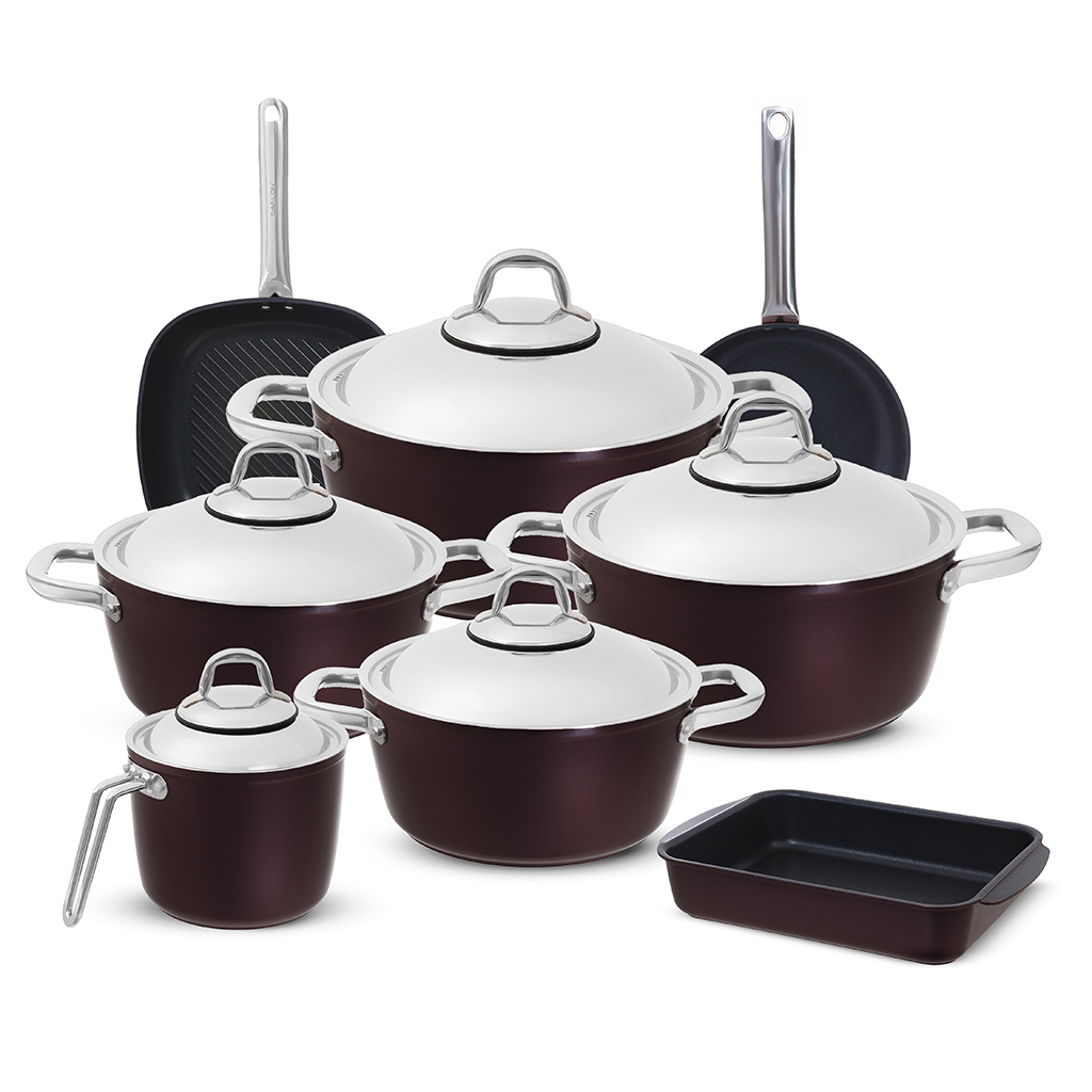 Trueval Granite Cookware Set With Stainless Lid, 10 Pieces - Burgundy