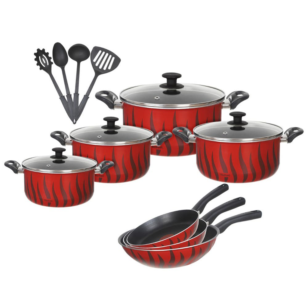 Tefal Tempo Cookware Set, 15 Pieces - Red | Almorshedy Marts
