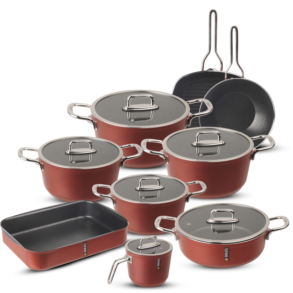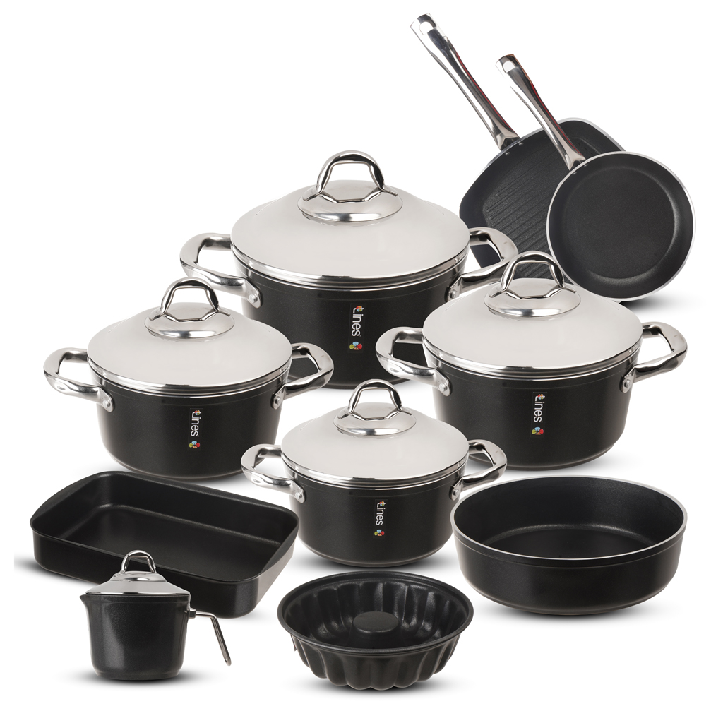 Lines Titanium Cookware Set, 12 Pieces - Rose Gold | Almorshedy Marts