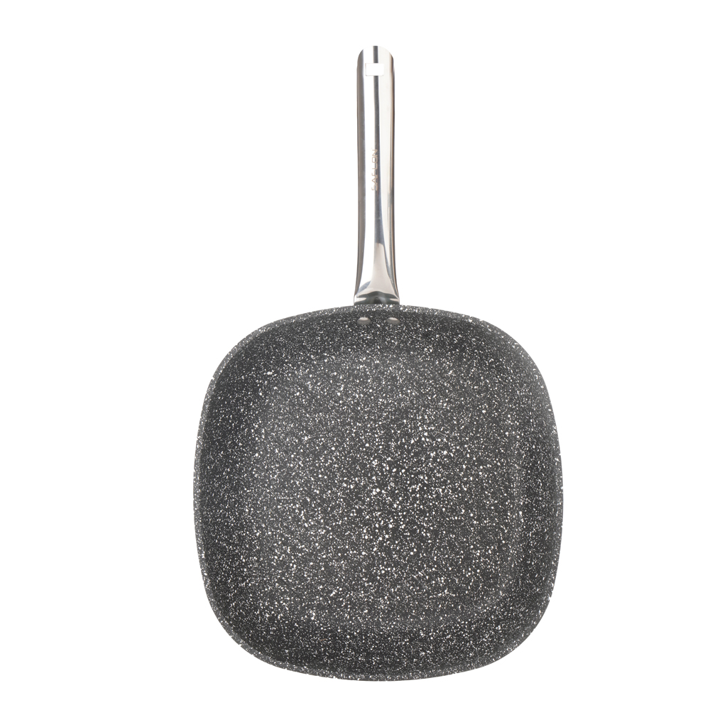 Brand: Saflon Type: Cookware Set with Stainless Steel Lids Color: Dark Grey Number of pieces: 15 Pieces Material: Granite 15-Piece Granite Cookware Set: 1 Pot with lid – 18 cm (2.0 L) 1 Pot with lid – 20 cm (2.8 L) 1 Pot with lid – 24 cm (4.8 L) 1 Pot with lid – 28 cm (8.0 L) 1 Oven tray – 28 cm (5.0 L) 1 Milk pan with lid – 16 cm (2.65 L) 1 Frying pan – 24 cm (2.0 L) 1 Wok pan – 28 cm (3.75 L) 1 Double grill pan – 36×26 cm (5.0 L) 1 Crepe pan – 32 cm