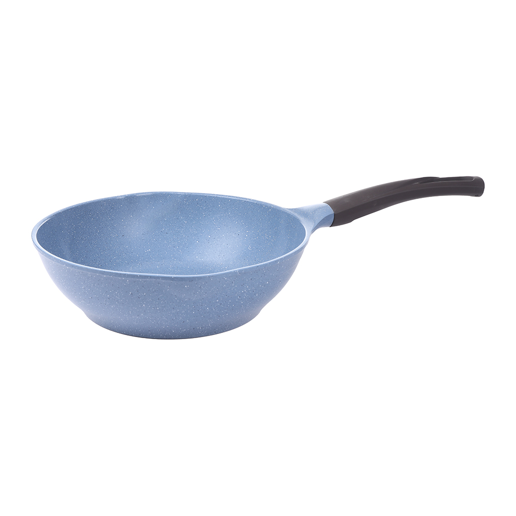 The frying pan is coated with high-quality granite, offering durability and resistance to scratches, ensuring long-lasting use.
