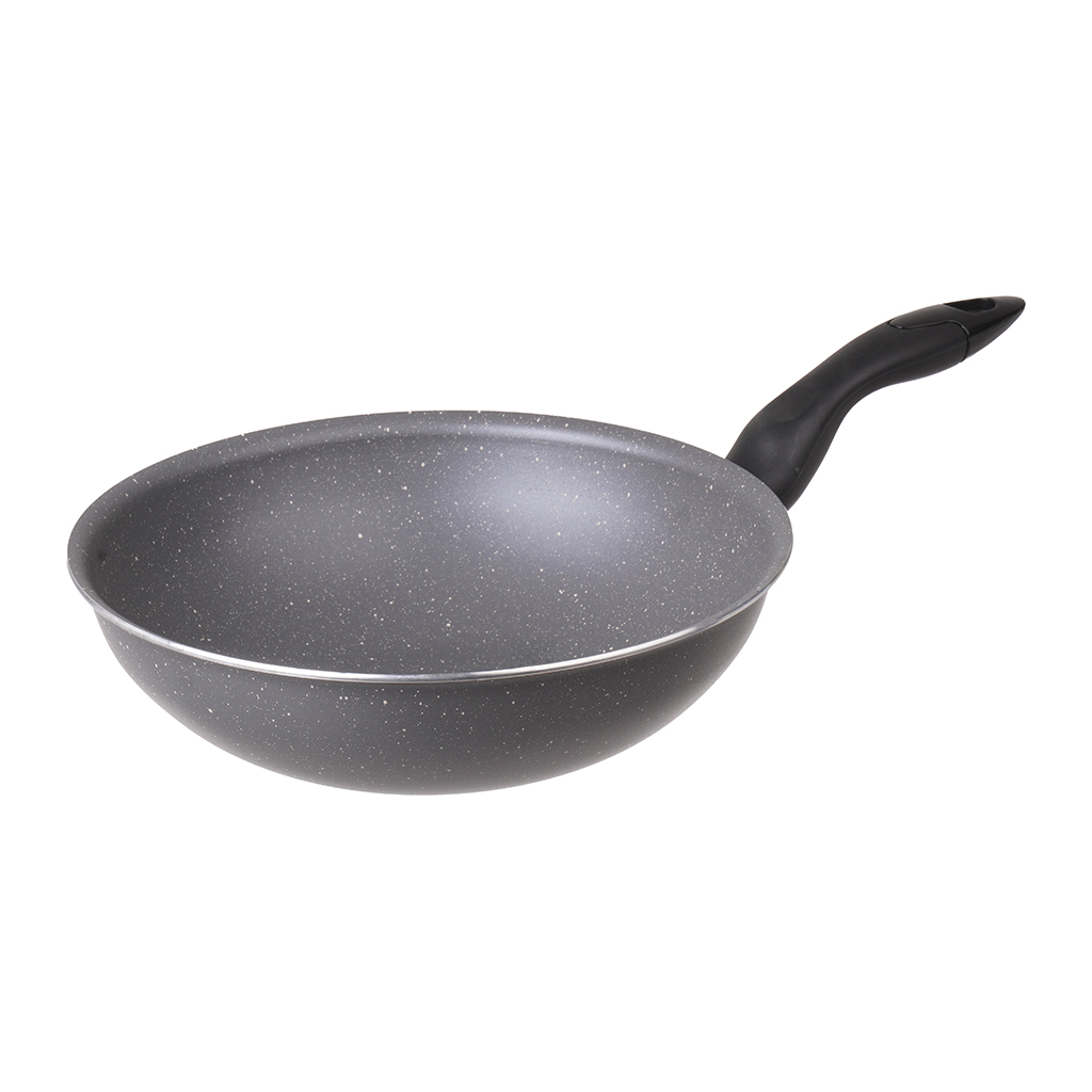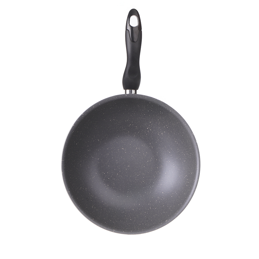 The frying pan is coated with high-quality granite, offering durability and resistance to scratches, ensuring long-lasting use.