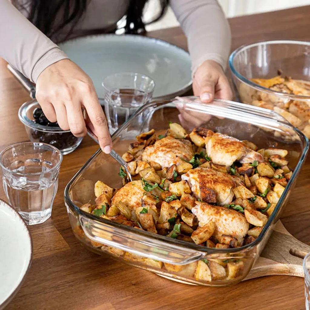Brand: Pyrex Type: Rectangle Oven Casserole With Lid Color: Clear Turquoise Material: Glass Size: 28 cm About Product: Microwave safe. Freezer safe. High Quality. Safe to use. Can easily be cleaned. Easy to use.