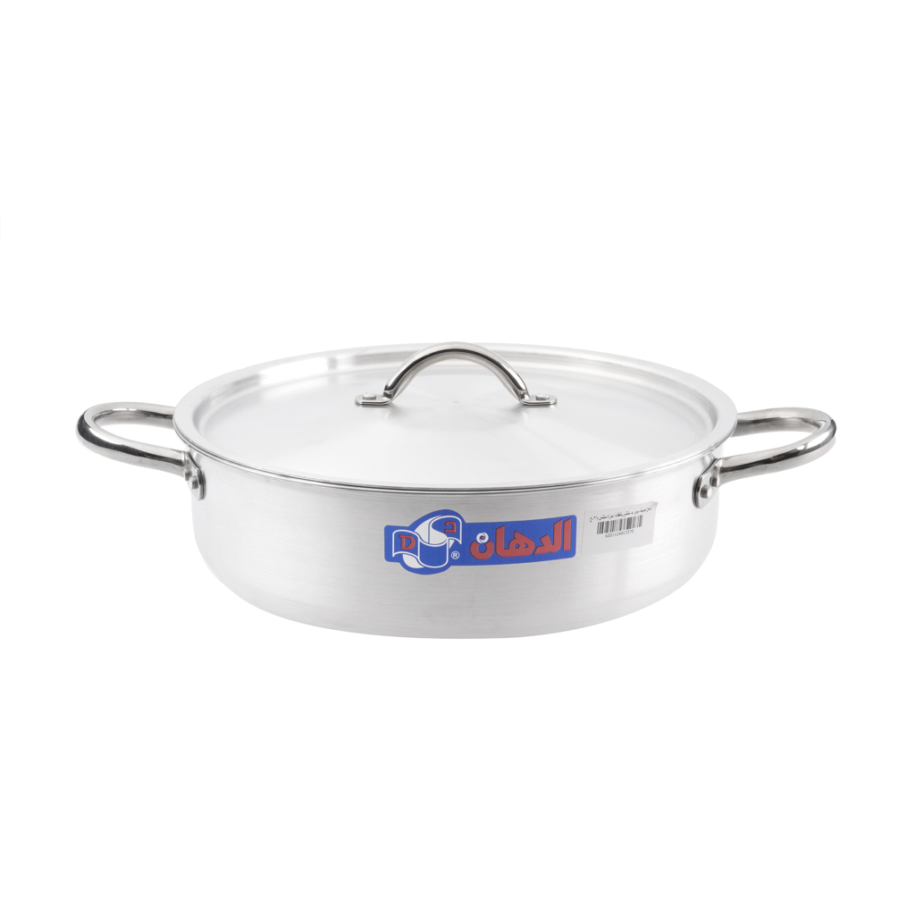 El Dahan Super Round Aluminium Oven Tray With Lid And Stainless Steel Handle, 32 Cm - Silver | Almorshedy Marts