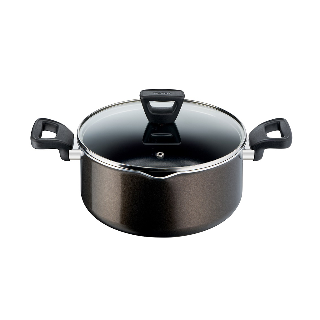Brand: Tefal Type: Cooking Pot With Glass Lid Model Name: Xl Intense Model Number:403841004 Color: Dark Brown Material: Titanium Size: 24 Cm Long Lasting Performance Thanks To Durable Titanium 2X Non Stick Coated In France. Perfect Searing Thanks To Thermo-Signal™ Heat Indicator Which Changes Color When It'S Time To Start Cooking. Cook On All Stovetops Except Induction. 100% Safe Coating 0% Pfoa, 0% Lead, 0% Cadmium. Homogeneous Cooking With Diffusion Base. Effortless Cleaning Thanks To High Quality Non Stick Coating Inside An Out. Comfortable And Secure Grip Of Oven Safe (Up To 175°C) Handle.