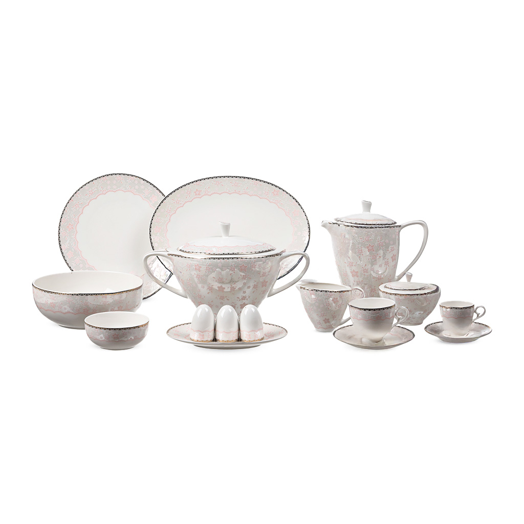 Fathy Mahmoud Porcelain Dinner Set, 62 Pieces - White Gold | Almorshedy Marts