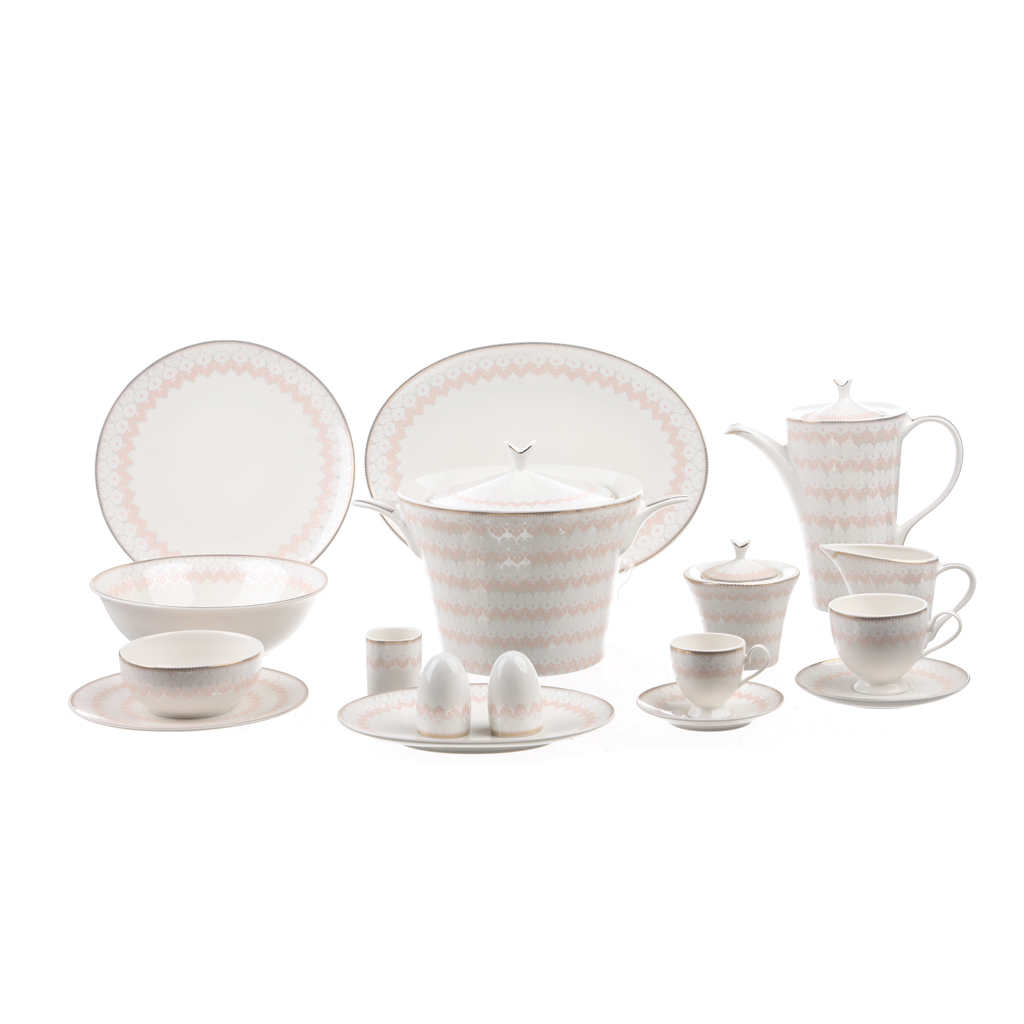 Lotus Porcelain Dinner Set, 62 Pieces - White Turquoise | Almorshedy Marts