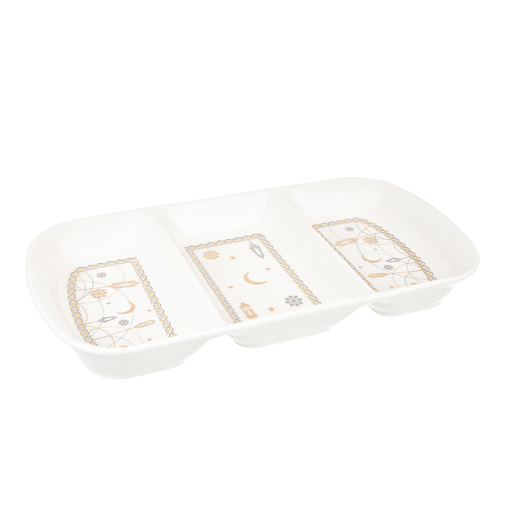 A Practical And Elegant Nuts Plates Made From High-Quality Porcelain, Designed With Three Separate Compartments For Serving Different Nuts Or Snacks In An Organized And Attractive Way. Durable And Easy To Clean, It Adds A Modern Touch To The Dining Table. Perfect For Daily Use Or Special Occasions, With An Organized Layout That Allows Easy Access To Each Type Of Snack During Serving.