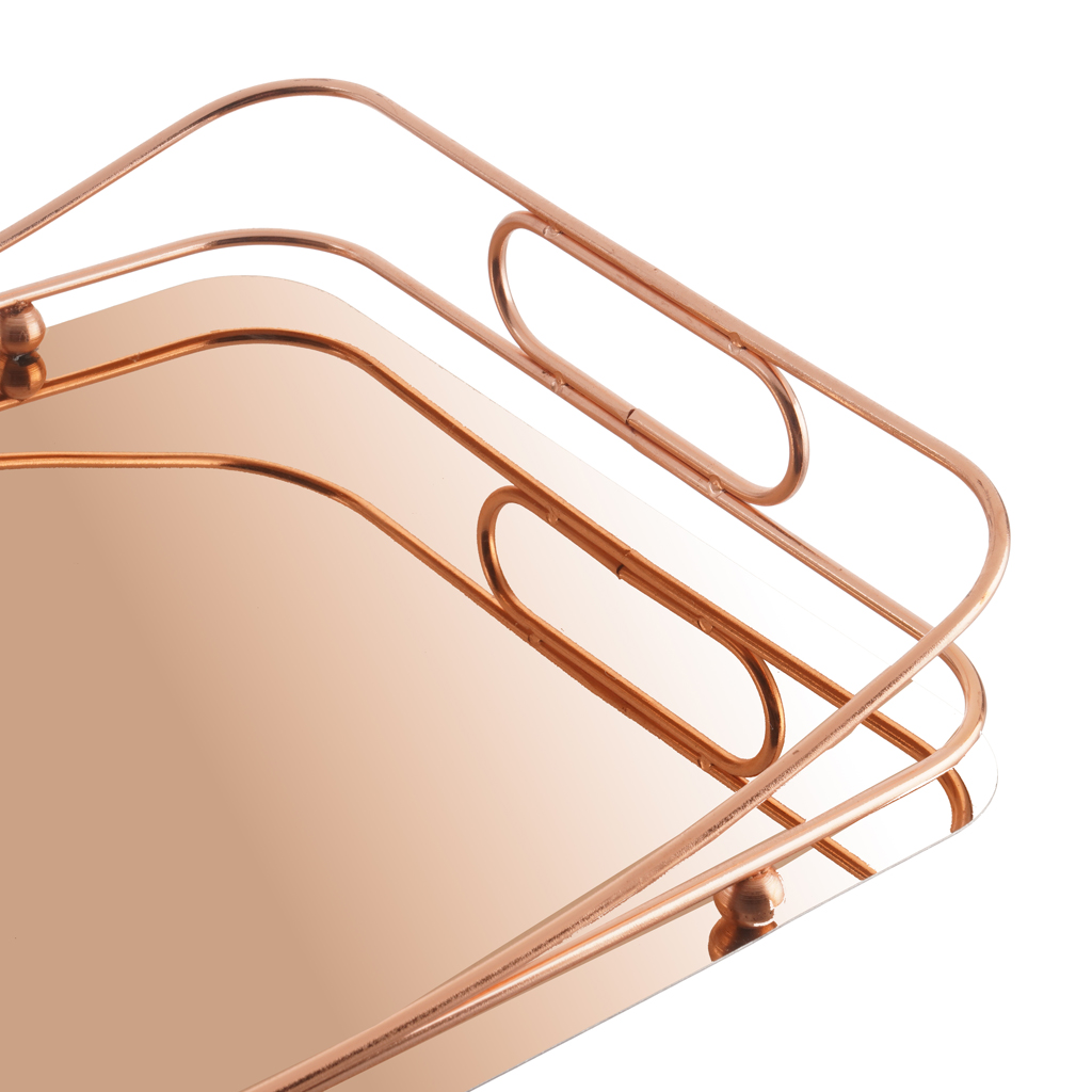 Best Gold Stainless Steel Rectangular Serving Tray Set, 2 Pieces - Copper | Almorshedy Marts