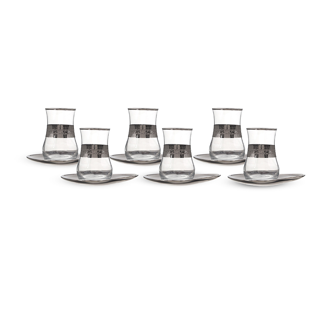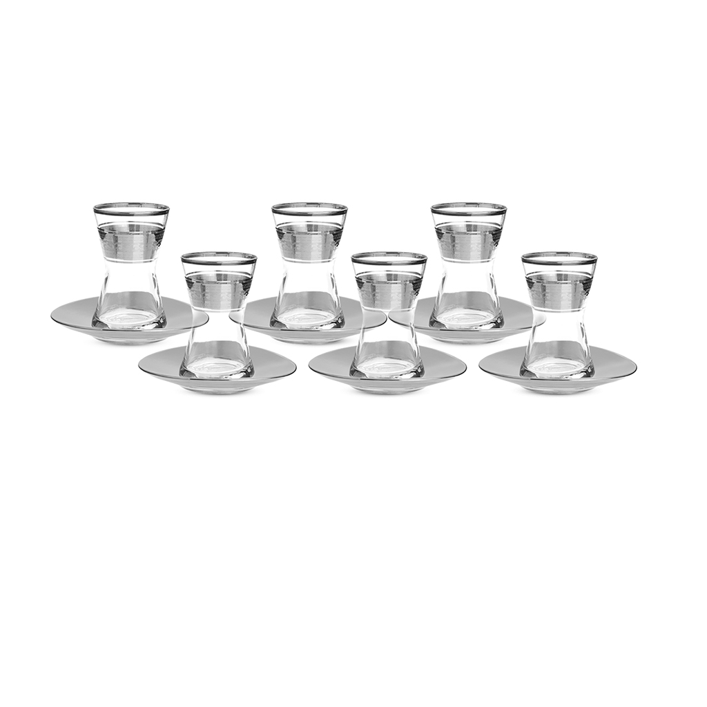 Lav Glass Cups Set With Plate, 170 ml, 12 Pieces - Clear Silver | Almorshedy Marts