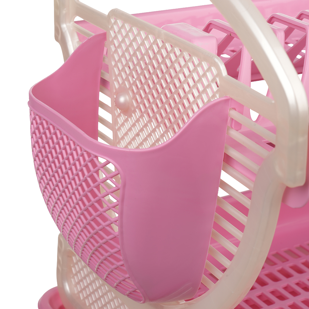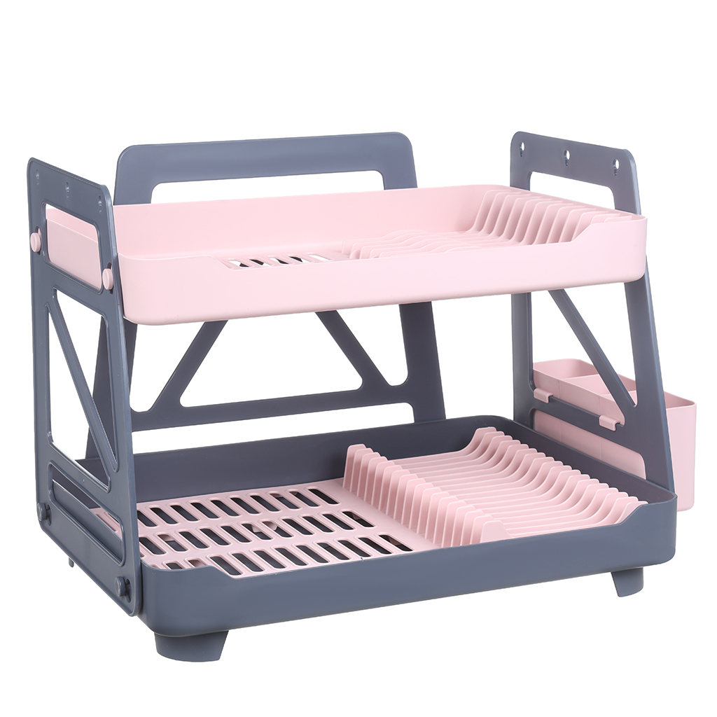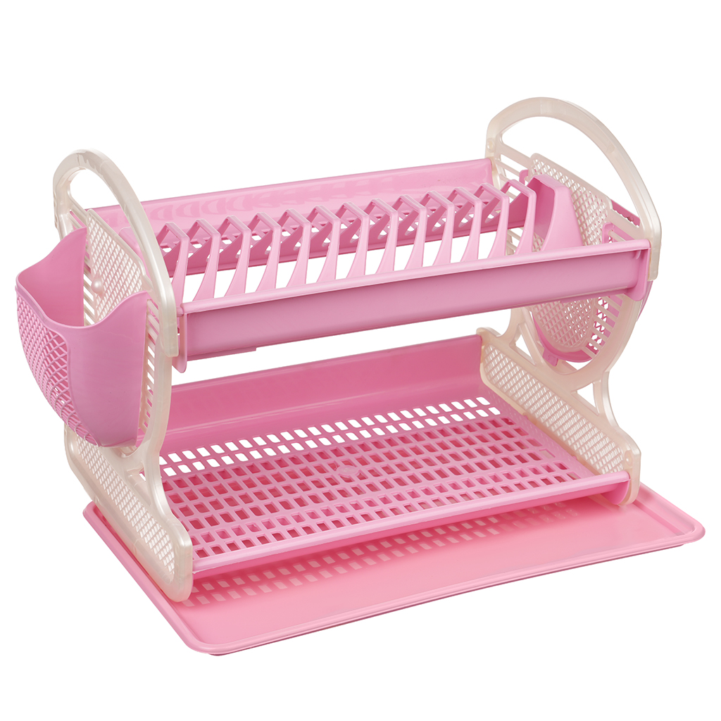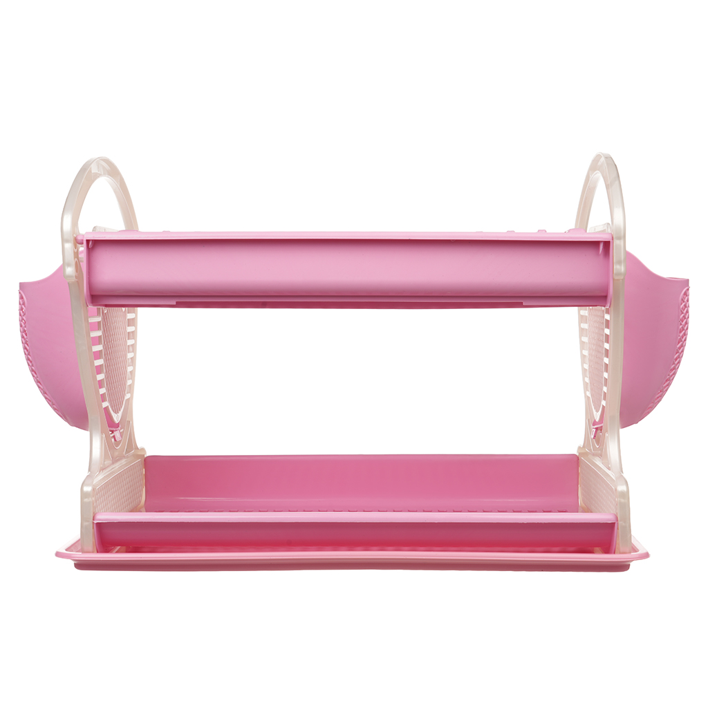 Brand: Aksa Type: Dish Rack With Removable Strainer Color: Pink Grey Material: Plastic Number Of Racks: 2 Racks Made from sturdy materials that ensure long-lasting use and support heavy plates and utensils. Can be easily wiped or rinsed for a clean and hygienic setup.