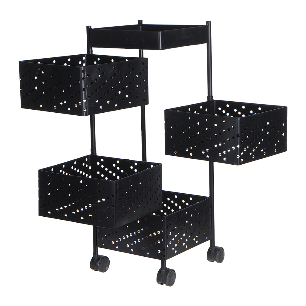 Tiba Home Metal Square Kitchen Trolley Storage, With 4 Wheels, 4 Turns - Black | Almorshedy Marts