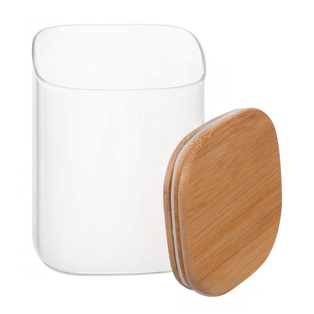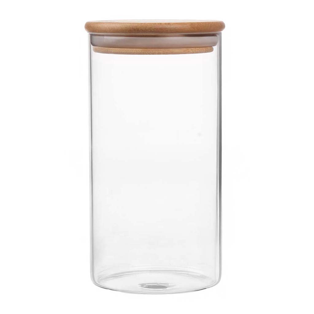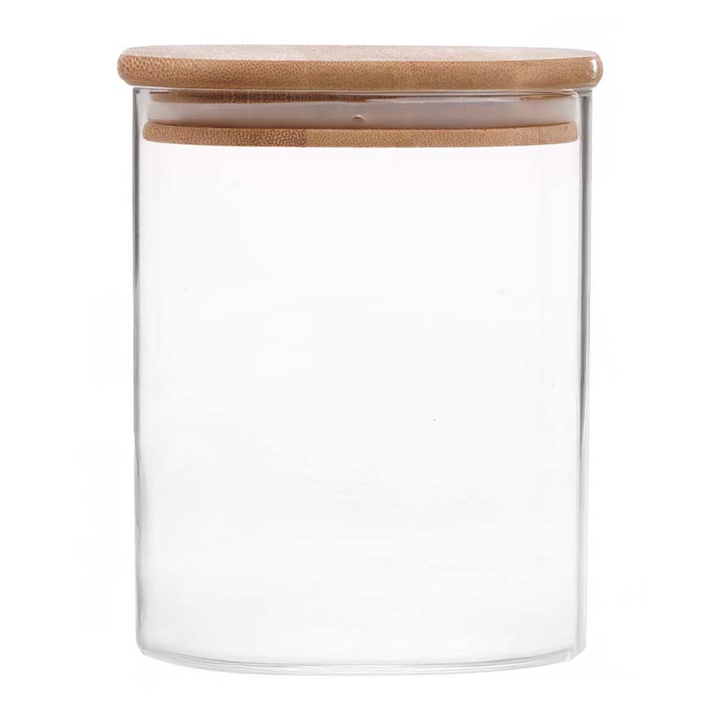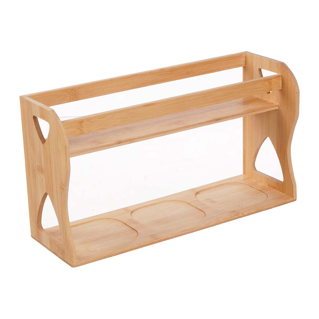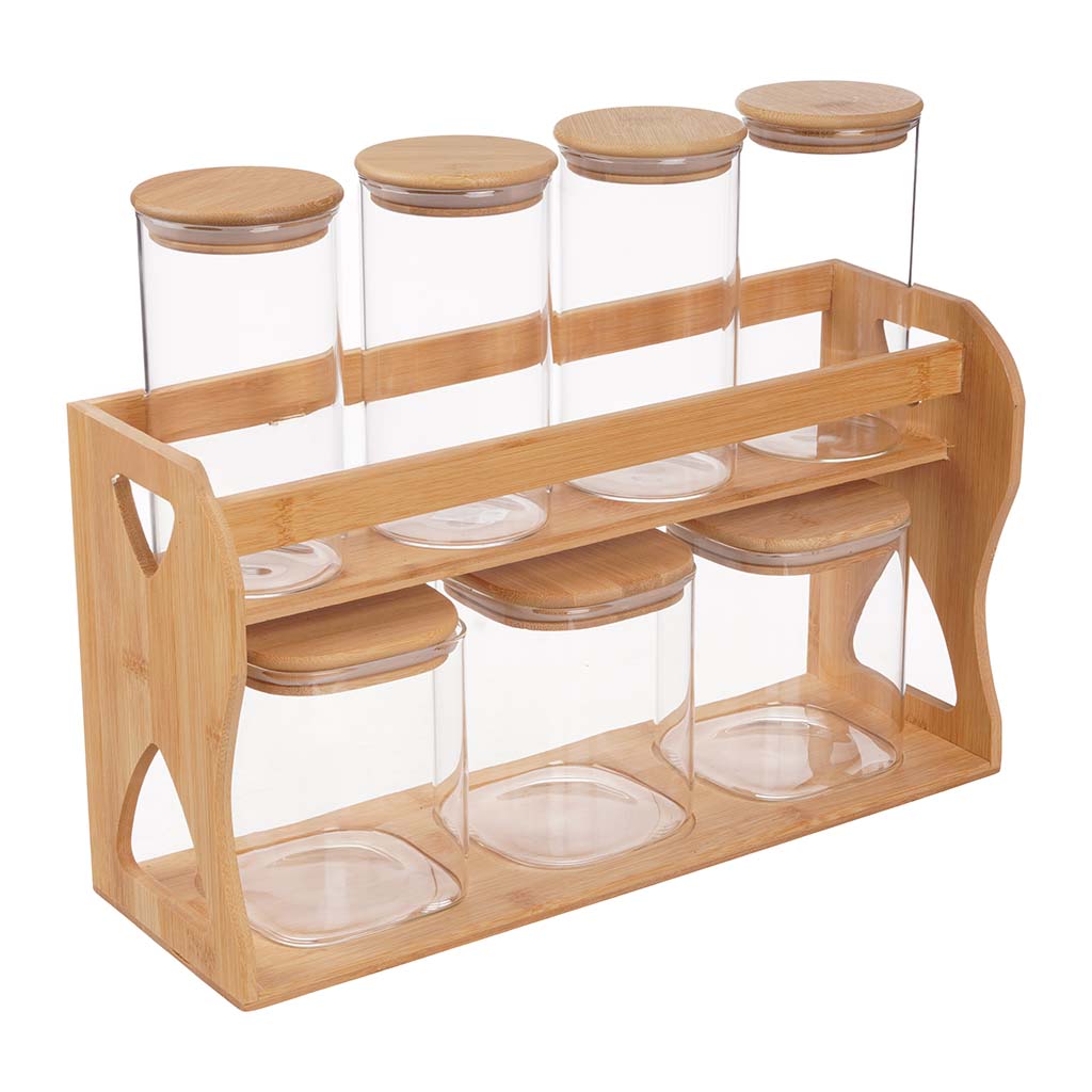 Glass Spice Jar Set with Wooden Stand, 7 Pieces - Clear | Almorshedy Marts