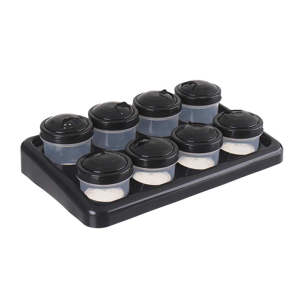Brand : Pro Plast Item Type : Spice Jar Set With Stand Color : Black Material : Plastic Size : 3*150 & 3*300 Ml Number Of Pieces : 6 Pieces About Item : Each Jar With Three Different Holes In The Lid, Allowing You To Select The Desired Quantity Of Spices Easily Based On Your Cooking Needs. The Set Includes Two Sizes, 150Ml And 300Ml, To Suit Different Spice Storage Needs. The Set Includes A Stand That Keeps The Jars Organized And Easily Accessible. Made From High-Quality, Safe Materials Ensuring Durability And Long-Lasting Use. The Design Allows Precise Control Over The Amount Of Spice Dispensed, Whether Small Or Large, Ensuring Convenience And Better Control.